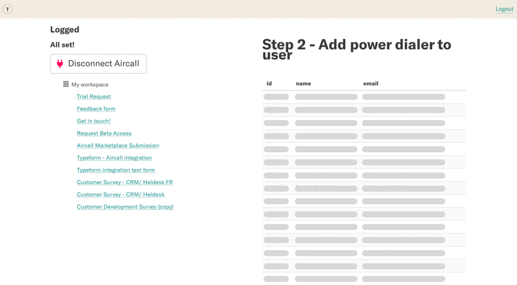Sign in to your Typeform account and quickly connect it to your Aircall account