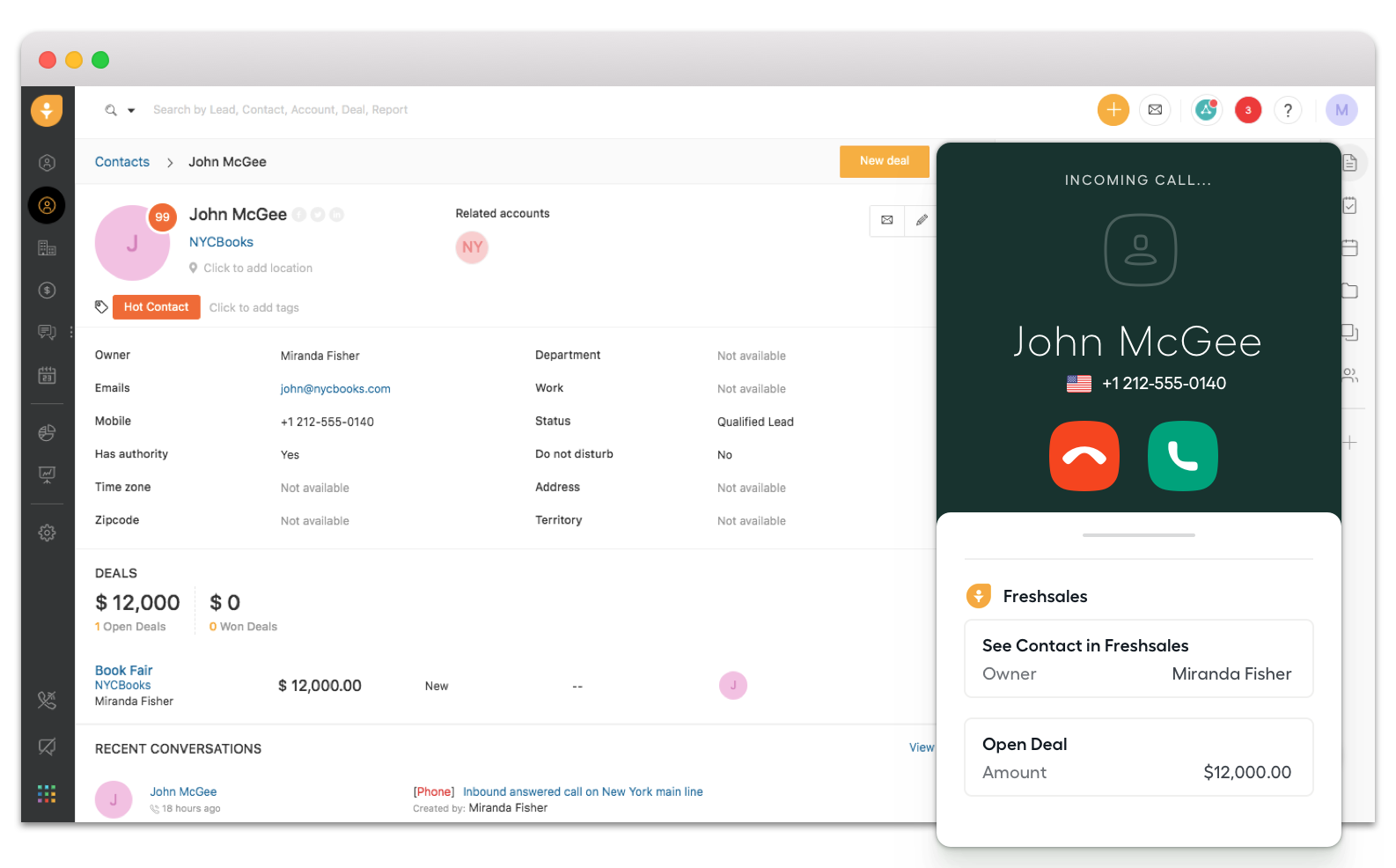 Si le contact n’est pas encore enregistré dans Freshsales, un nouveau profil sera créé automatiquement dans vos Leads.